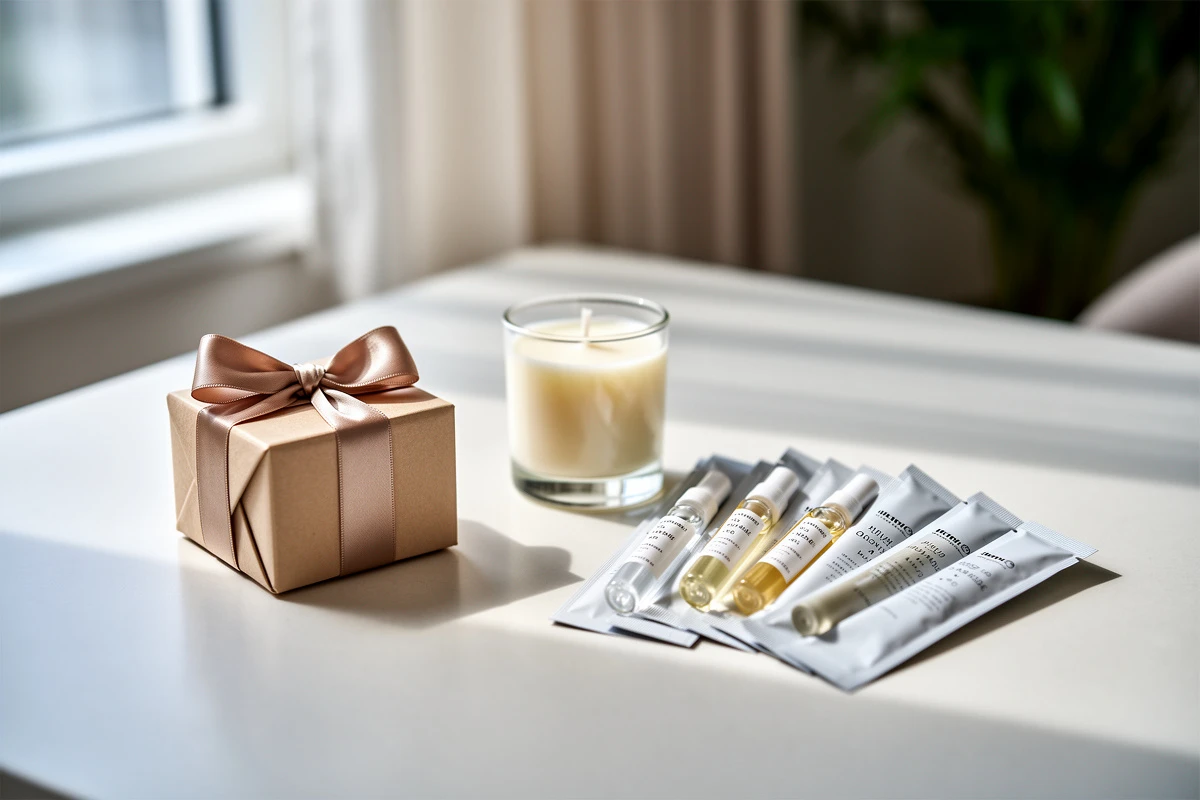 - Customer-chosen gift — the customer picks their preferred gift from a selection you curate. This works well when your line spans different preferences like colors, scents, or flavors.