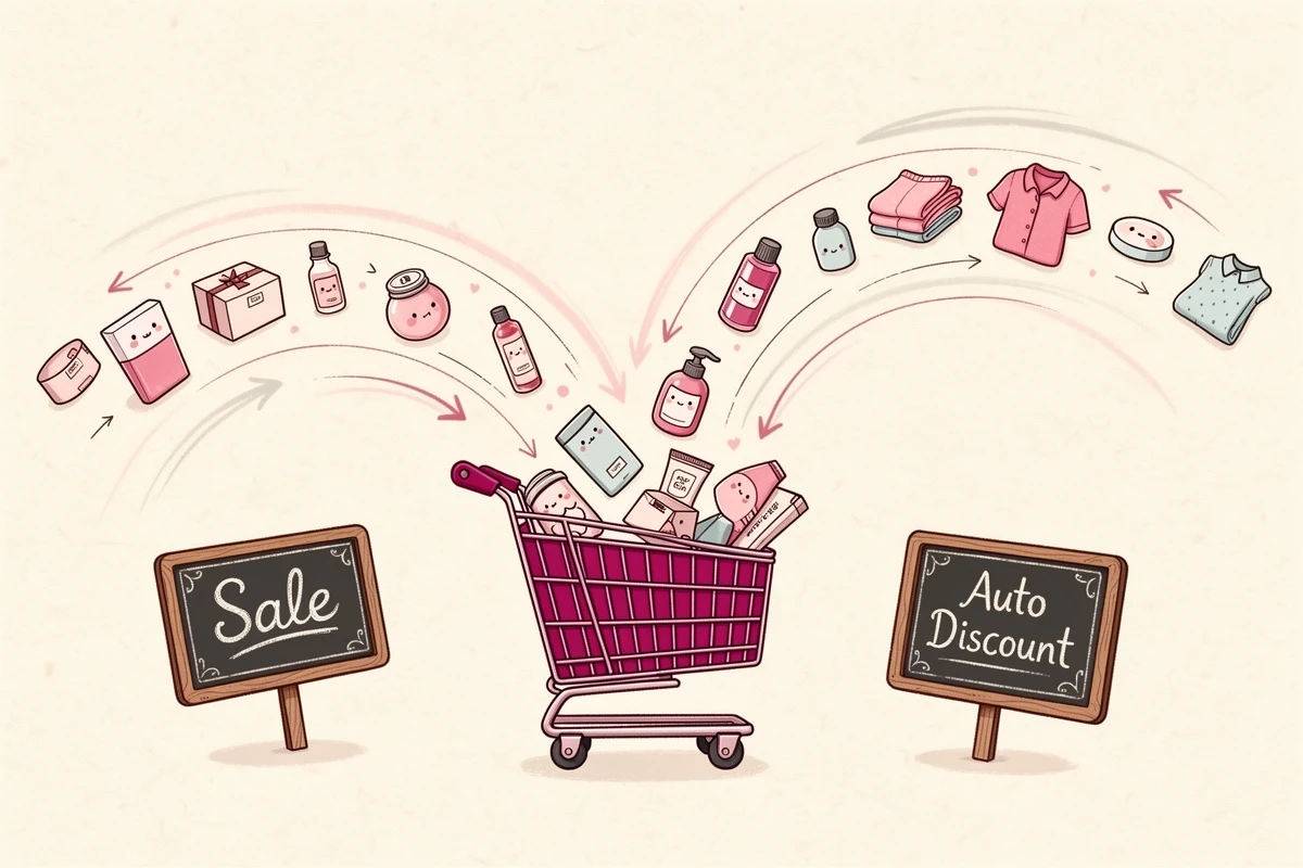 Shopify's automatic discount system applies savings at checkout without any customer action. You set the conditions — minimum cart value, minimum item count, or specific product requirements — and Shopify handles the rest.