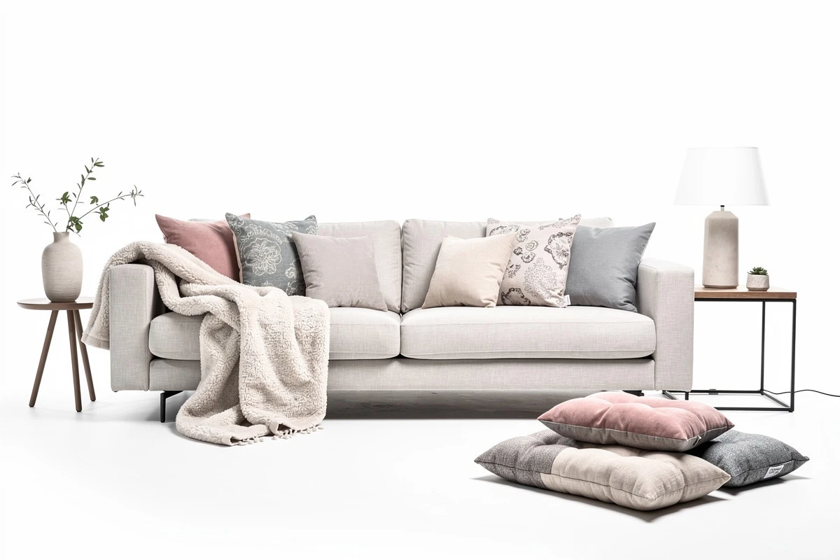 Decorative pillows transform a sofa from furniture into a styled space. They're low-commitment add-ons that customers often forget until prompted: